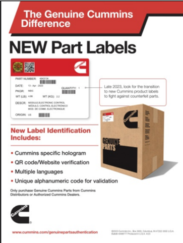 To differentiate from counterfeit products, the new labels feature a Cummins-specific hologram and a verification website.